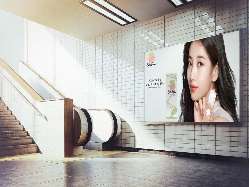 When creating a point of purchase for our foundation, We wanted to have the selling space to be in our parent brand store which is The Face Shop. We intend to have green in the background to showcase our natural ingredients. Also, a photo of our spokesperson. Then a table and shelves that has our foundation on it.