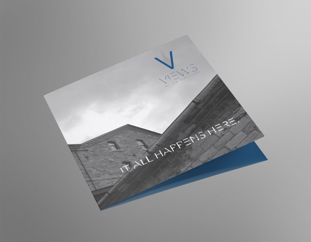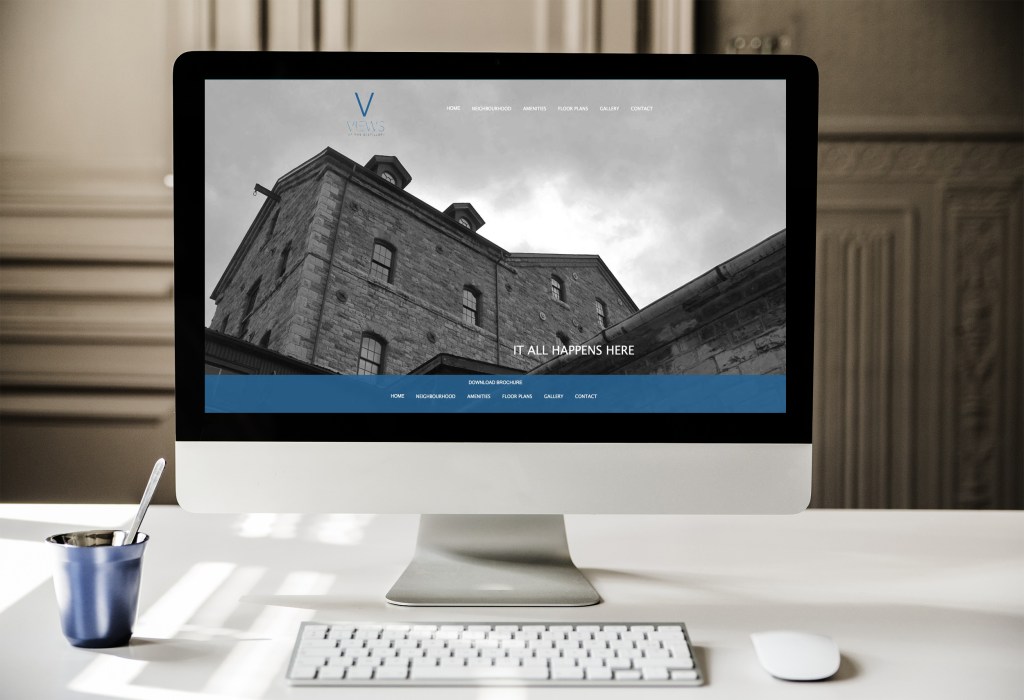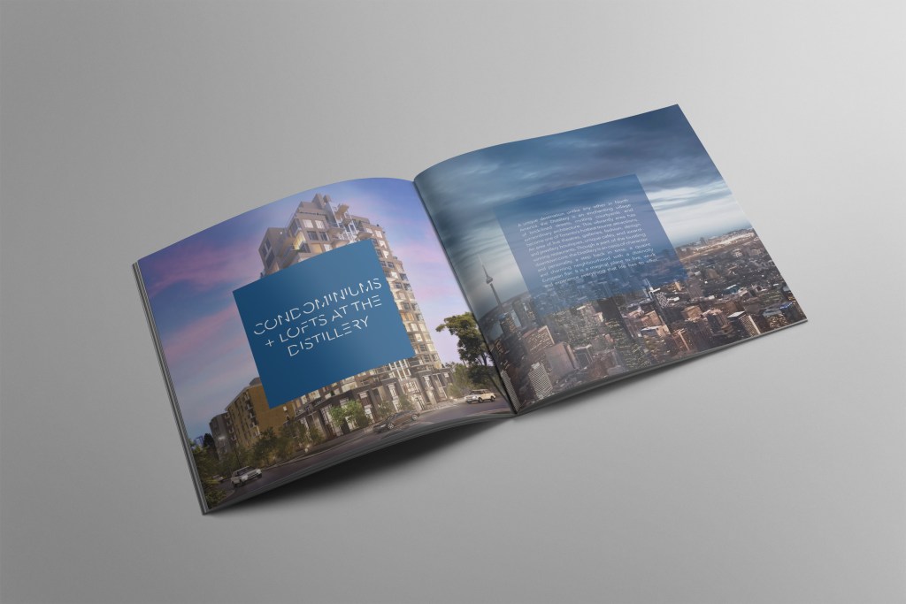 Create a condominium logo, brochure, folder, ad and website in the Distillery District.